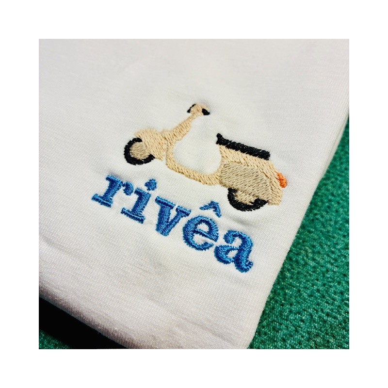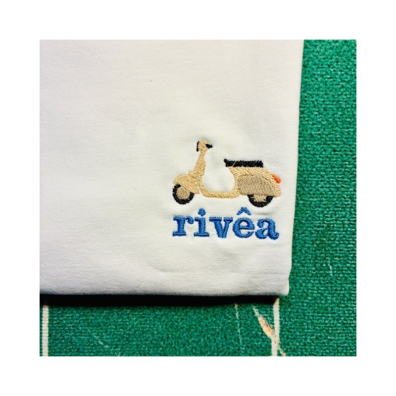 Ricamo sul lato cuore vespa in Liguria d'estate.